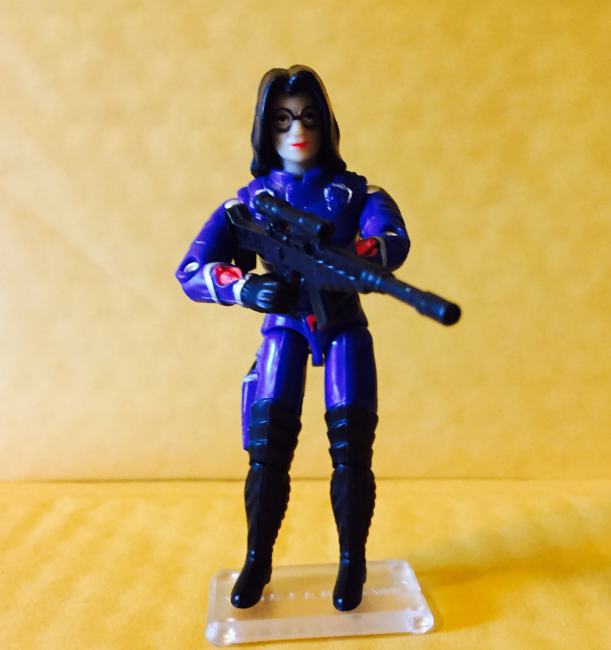 From the Files of Cobra Commander: “Though my forces made extensive use of the scoped high-density laser rifle when we were suffering a budget crunch in the early 2000s, Baroness used that weapon before it was cool. Though it pains me to admit it, I often listen to her advice. After all, it’s either her or Destro– and who are you going to trust? The college graduate with glasses and a sophisticated-but-vague Eastern European accent, or a guy with an open collar and a disco medallion? And, unlike most of my command structure, Baroness does more with her spare time than snorting crushed up prescription cat valium, watching reruns of Home Improvement, and prank calling Storm Shadow. Though, to be honest, I wish she’d prank call Storm Shadow more often. She’s a master of silly voices! He’d never catch on!”
