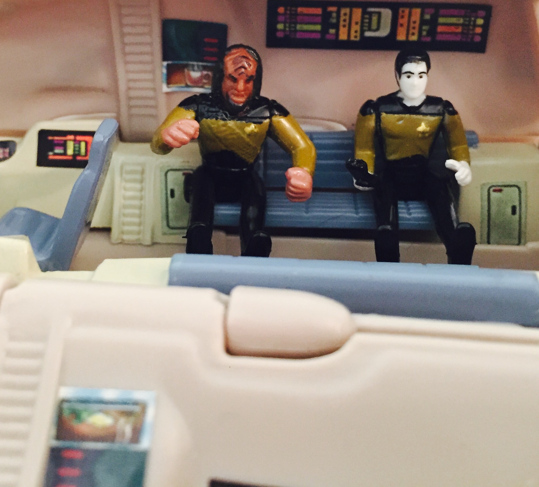 Two: because I love micro playsets. They offer an entire world for small figures to interact with, and they lend themselves to Big Idea play scenarios. And I always loved Star Trek for the Big Ideas– even if I still don’t fully grasp them all.