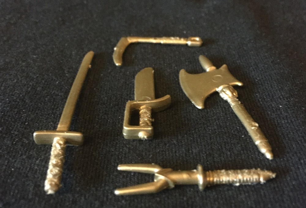 Vega uses a claw. It’s his thing. He doesn’t use axes, swords, or forks. He uses a claw. I’m fine with all of these weapons, as gold is a reasonable color for martial arts and melee weapons, and I think they look good with the figure.