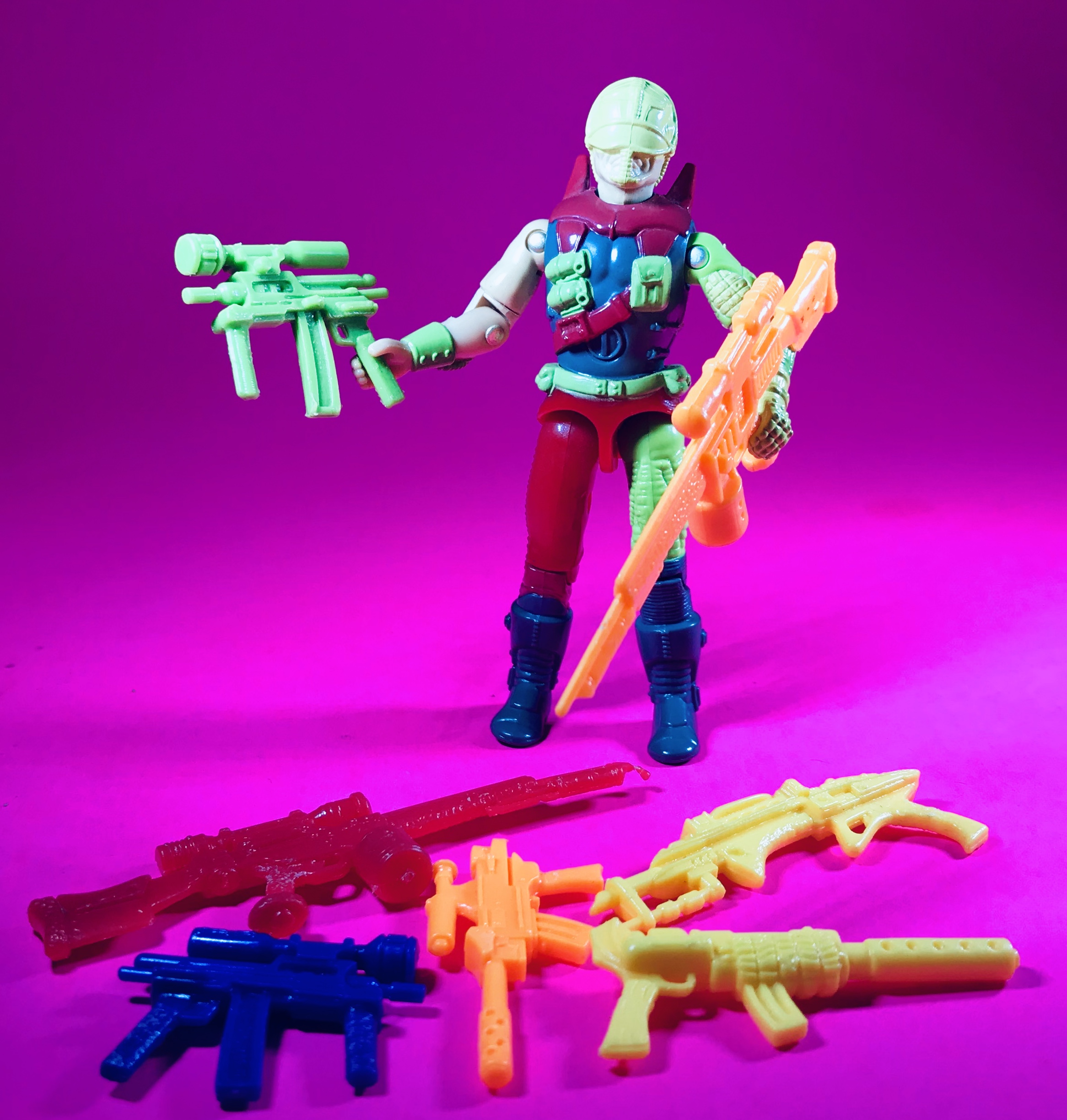 When I look at GI Joe weapons trees now, I see a weird kind of fun– a strange kind of time capsule that represents the worst of the line and a good part of my childhood I took for granted. Today, I enjoy pairing figures with brightly colored weapons and collecting Rock Viper rifles in every color of the rainbow. For me, time has softened my views and brought perspective.