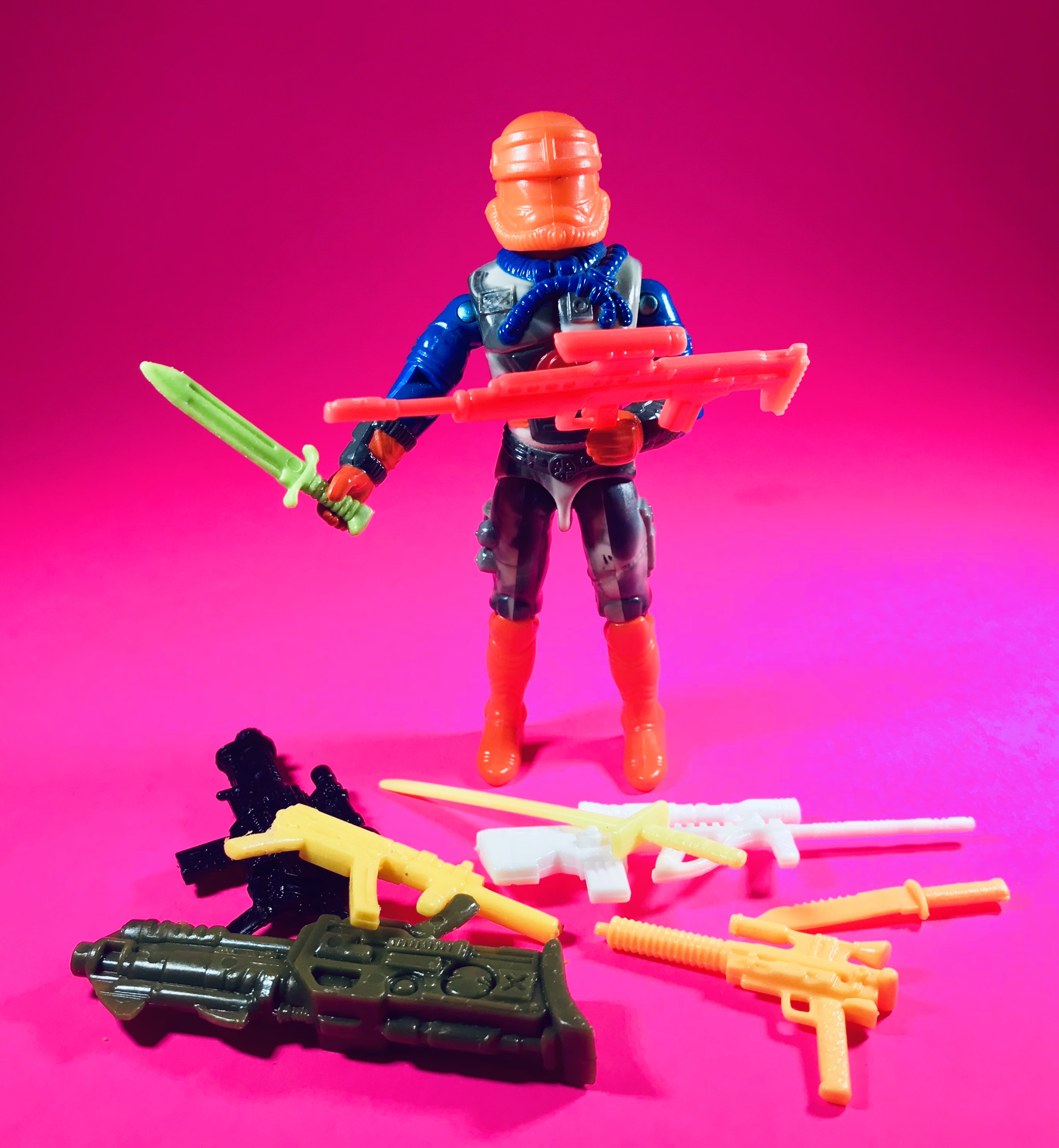 – The machine-gun looking thing, also in hot orange, also with the Astro-Viper. It was just a cool basic machine gun, so I used it often with many figures.