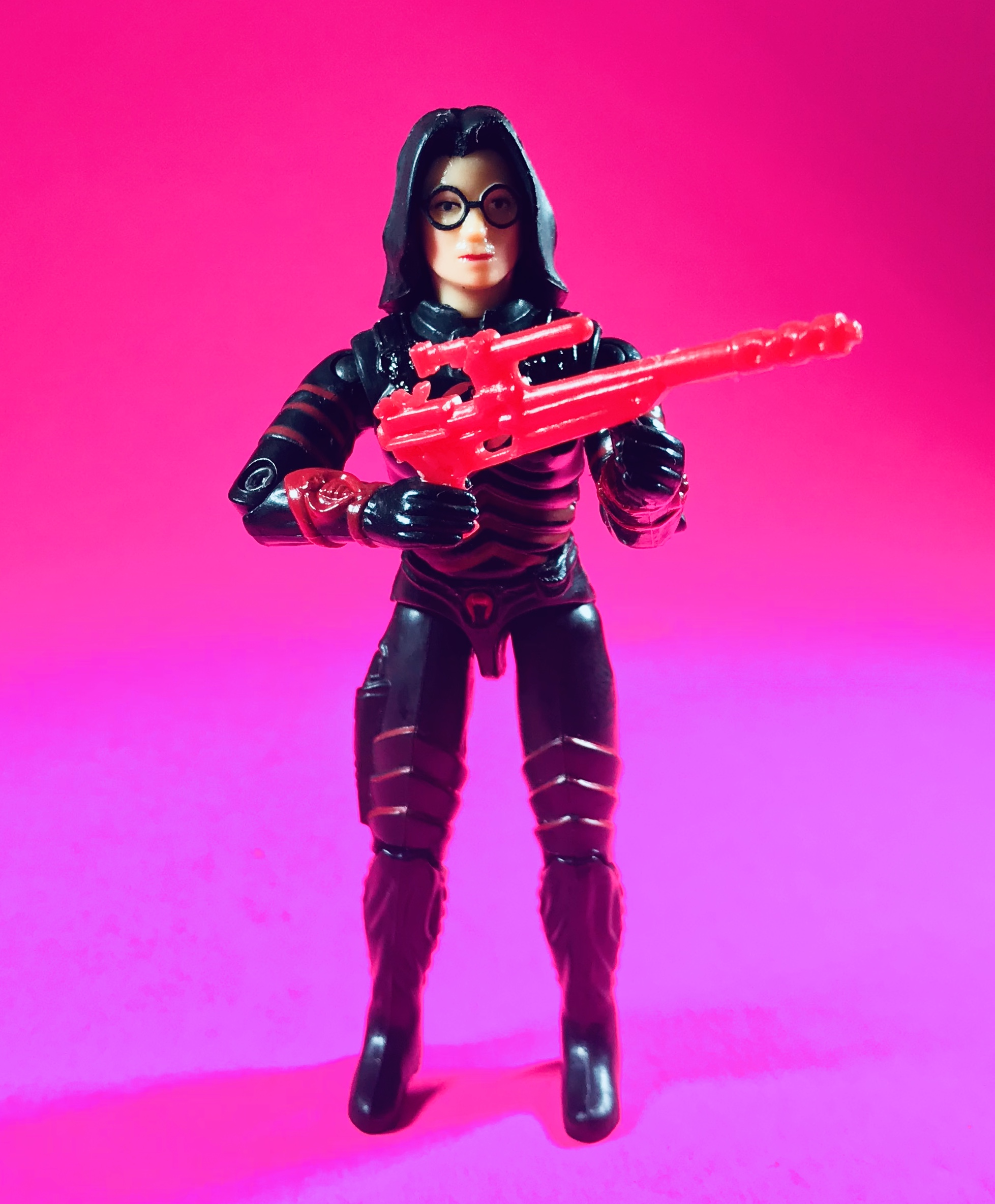 – The translucent pink sword from Shadow Ninja Nunchuk, because DUH. It’s an energy sword, of course! I had no other clear swords, so that thing was put through its paces. I wish I had more Shadow Ninjas just for those clear melee weapons, but Nunchuk clearly got the best, because everyone knows that translucent pink is BEAM ENERGY. I mean, even before I knew about Gundam I knew that was an energy color! It played a role in every since sci-fi story I ever did, and I’m surprised the handle hasn’t broken off or something.