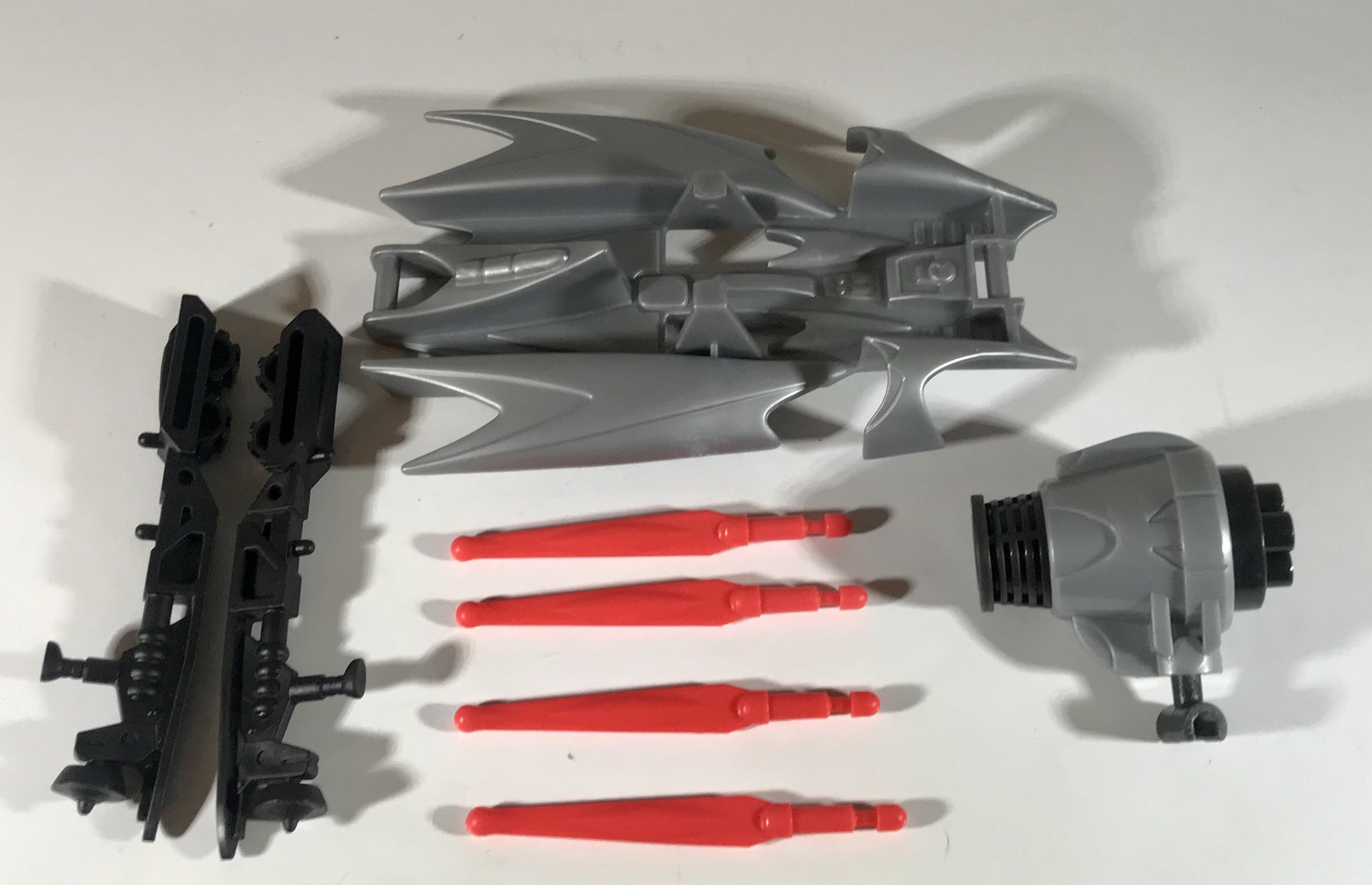 Again, a bit of a caveat– these are the accessories from an extra Future Knight Batman I picked up. Gotham Knight Batman’s actual weapons are cast in gold plastic, and the wings are a bit different. Since I’m never excited to buy any gold plastic from 1987-2003, I’m fine with the silver accessories. Silver just looks better, too.