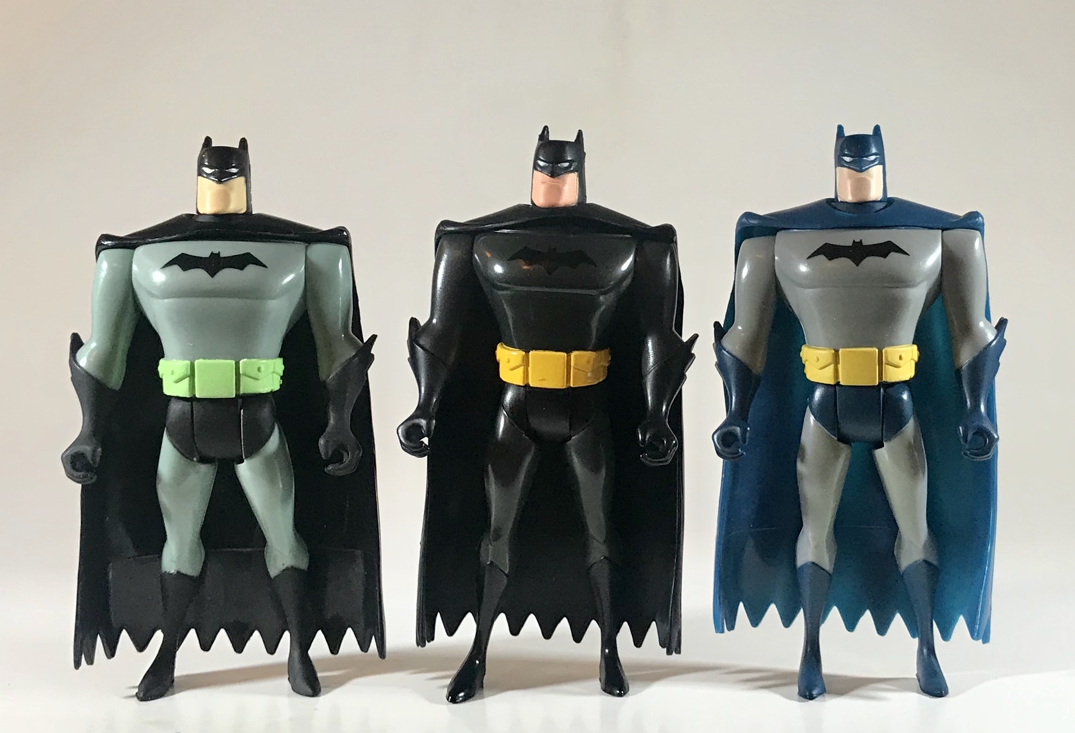And, just for kicks, here he is with Night Shadow Batman and the Batman that came in Hasbro’s 2001 “Shadows of Gotham City” box set: