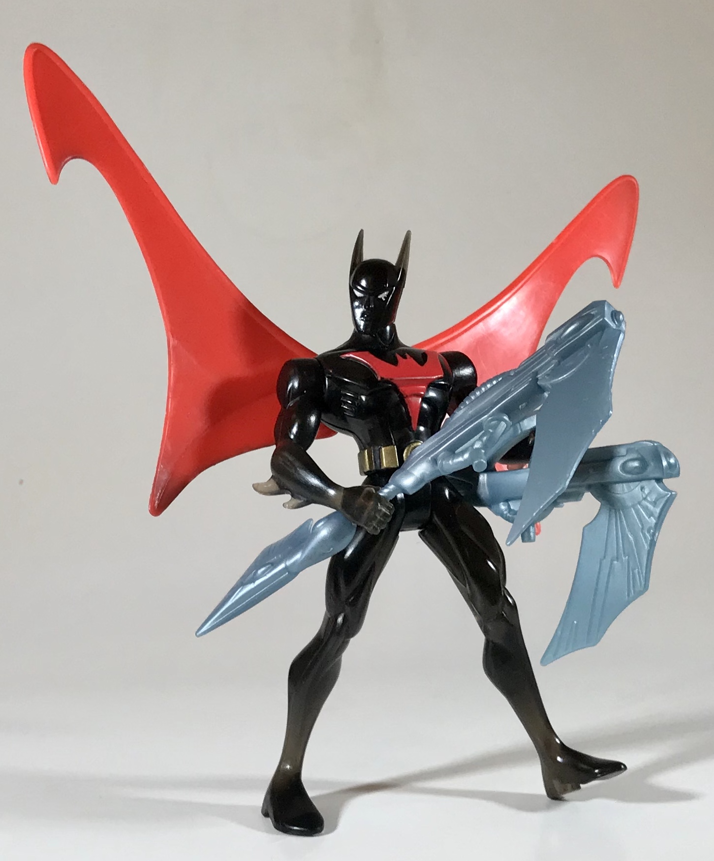 This toy doesn’t only suffer because of stability and quality control and because there are better options– it also suffers because of its price. This is one of the most expensive figures in the Batman Beyond toy line, precisely because it’s a no-frills version of the regular Terry McGinnis Batman. I was only able to find an incomplete version in a mixed lot for a price I was comfortable with, hence the mismatched accessories here.