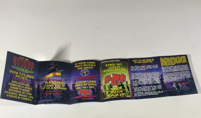 Each of the toys also came with a contest pamphlet. I’m mad that I didn’t win a DVD player, even 20 years later. Come to think of it, a DVD player wasn’t a bad prize in 2000– I didn’t have one until 2003.
