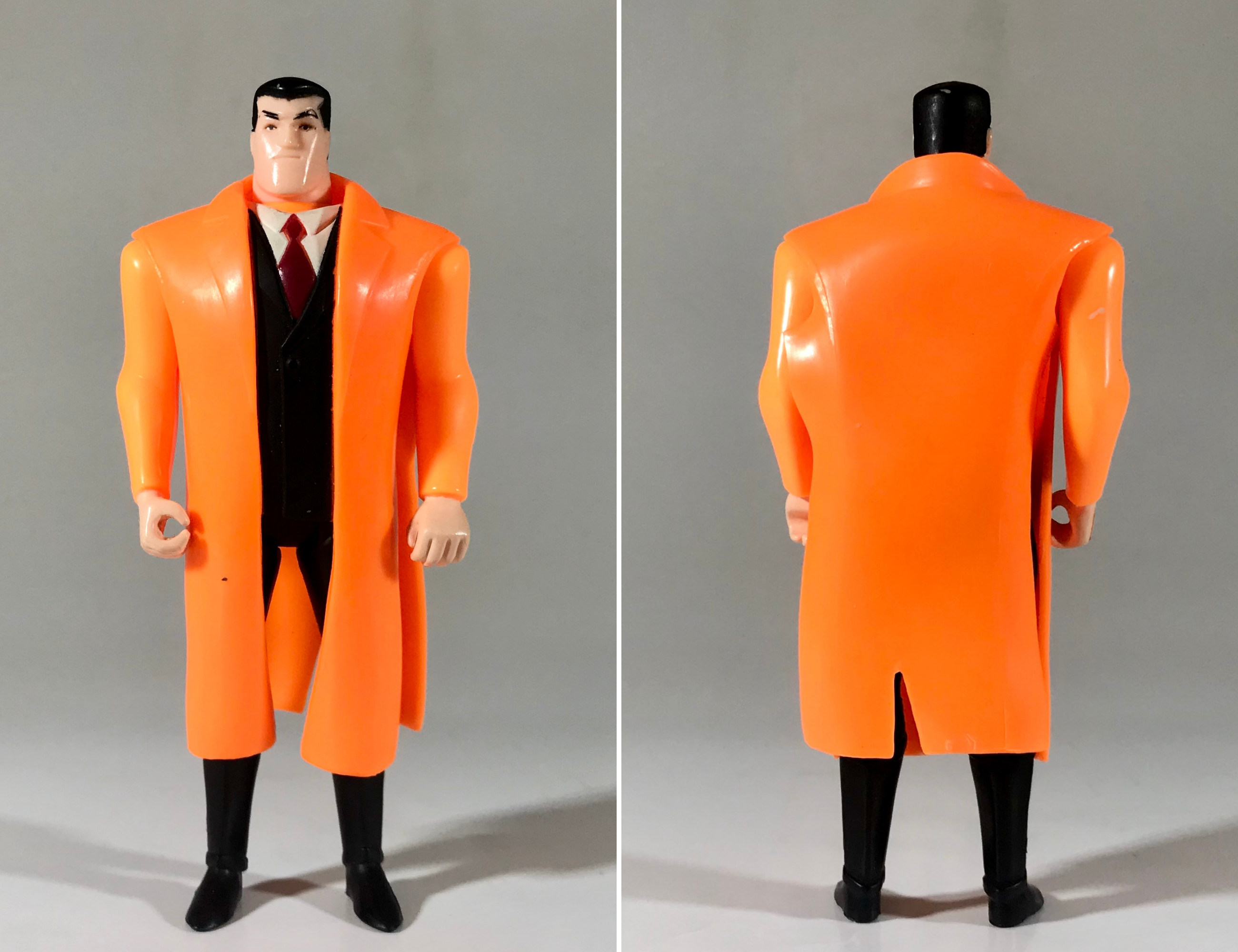 Obviously, the figure looks better and more realistic in grey than it does in orange or red. This grey version is the best version of the mold, and I personally think it’s the best Bruce Wayne toy anyone’s ever released. It looks good with the trench coat and it looks great without it.