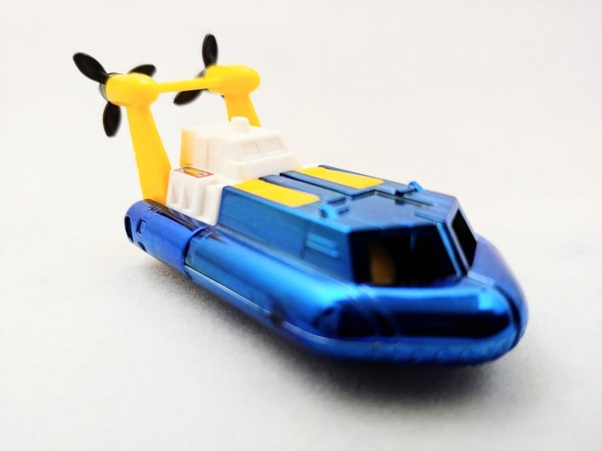 His hovercraft mode is sleek and retro-futuristic. I’m sure it’s based on some sort of real hovercraft, but I don’t know anything beyond that. All I know is that it looks cool and fast. The Autobots never had too much of a naval presence, so Seaspray is a welcome addition to any team of heroic Cybertronians, regardless of generation.