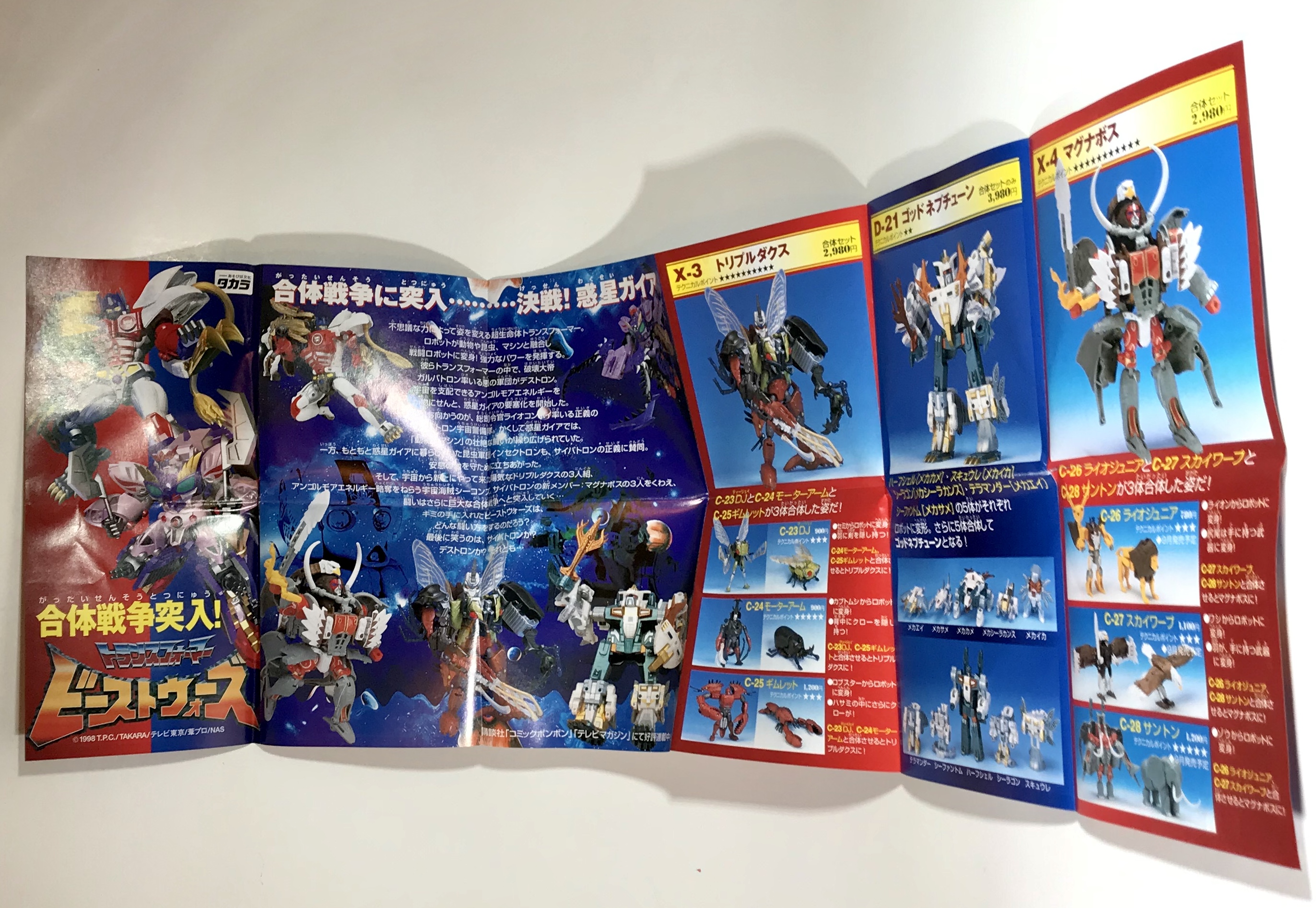 Finally, we have the most fun part of all the paperwork, which is a fold-out catalog showing you all the other toys in the BWII line. I don’t have a scanner, so you’ll just have to suffer through these photos. I am sure you can find nice scans of it somewhere on the web, though. This is definitely worth saving and keeping around.