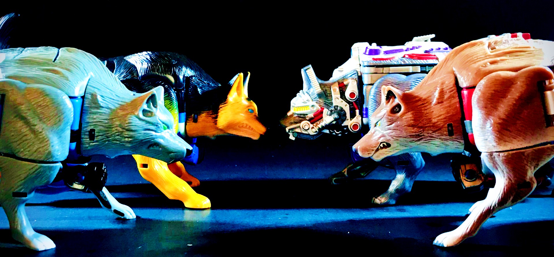 Consider today’s subject, 1998 Transformers Beast Wars II Max-B, who is a cyborg German Shepherd with wolf-colored fur.