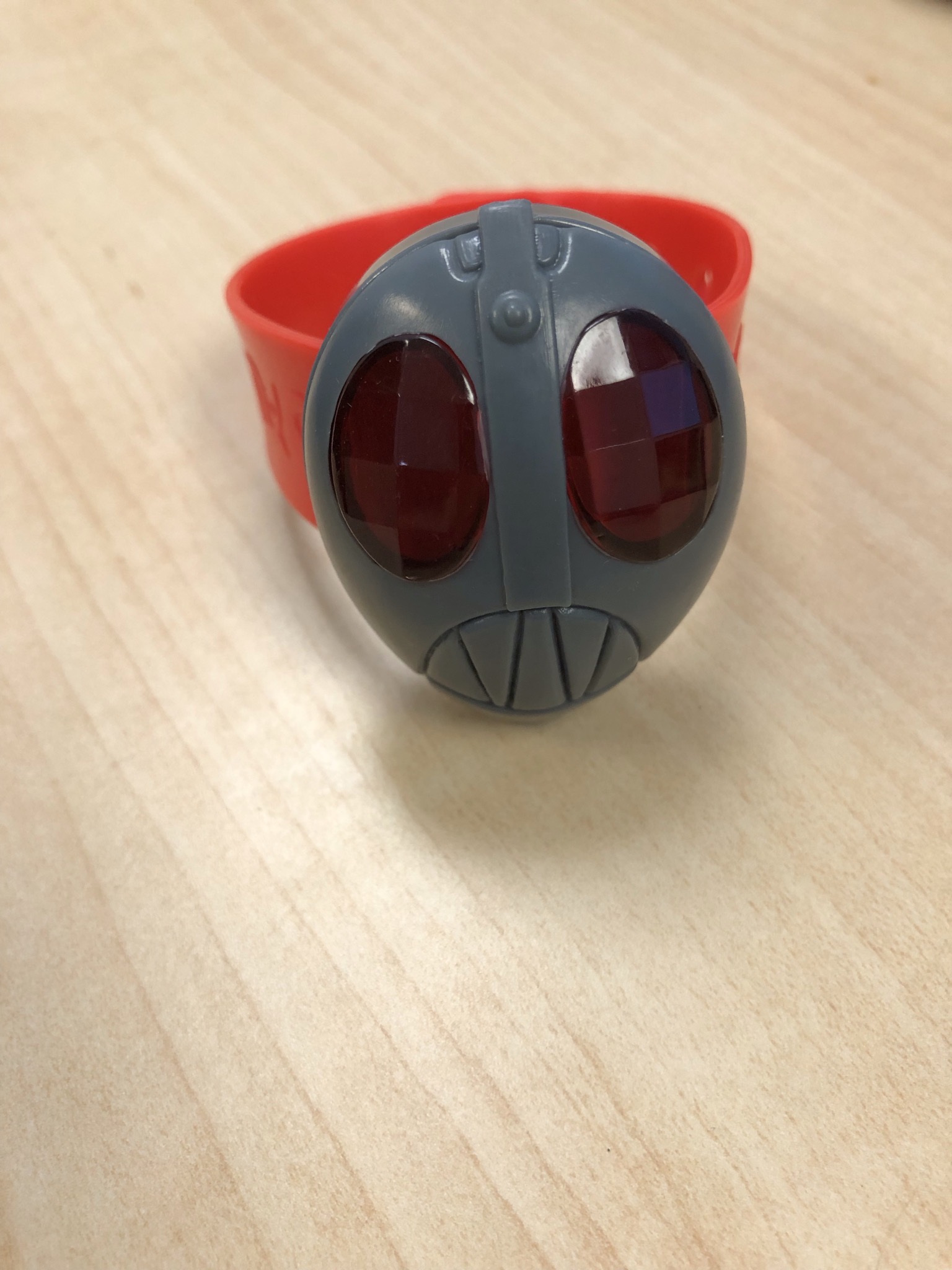 Ecto Viewer Wrist Band. It’s just a little bracelet with a head on it that just BARELY looks like the character. You take off the faceplate and look through it to see a compound eye effect. I thought this was honestly the weakest toy of all of them until I did this: