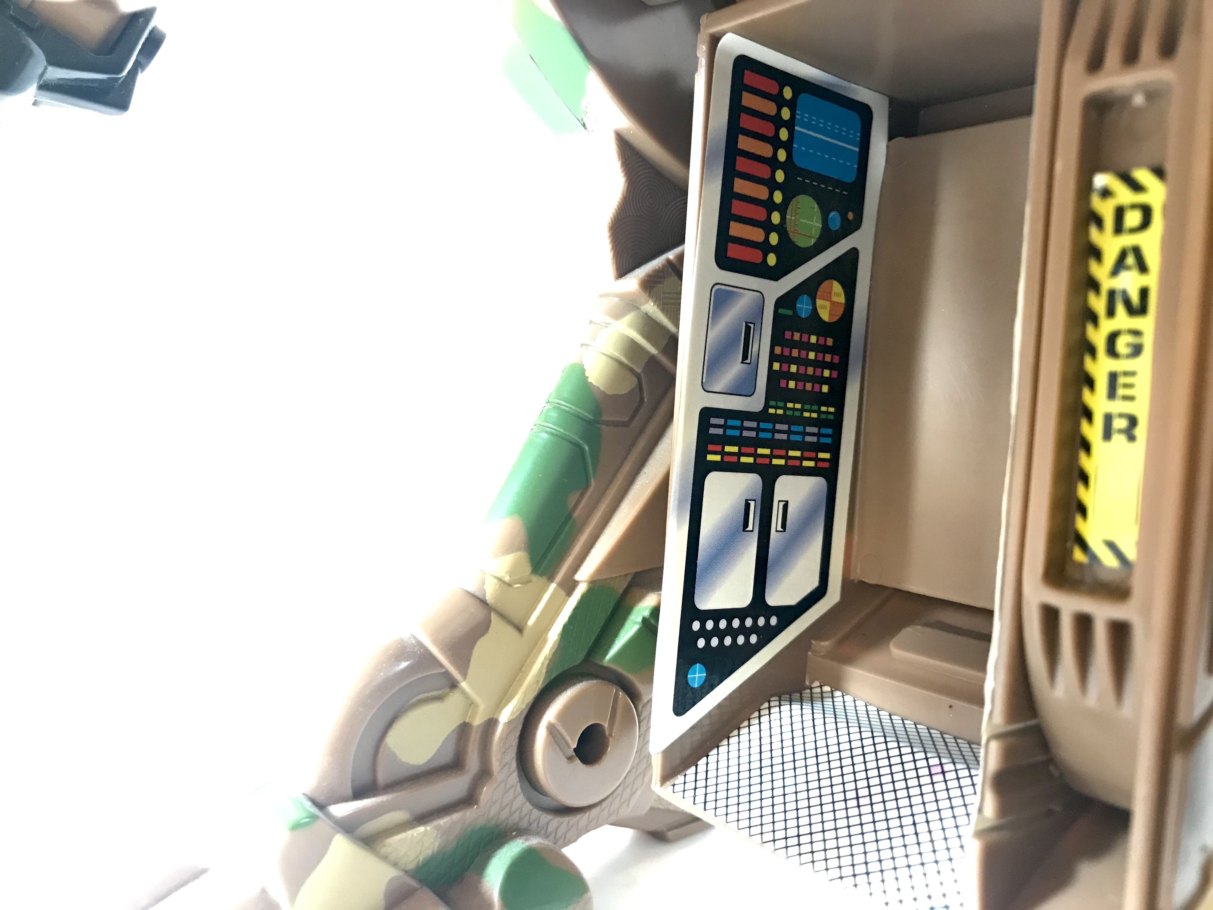 Anyway, the “troop transport” assembly swings out from the bottom of the toy, which reveals the troop compartment and the toy’s built-in speaker.