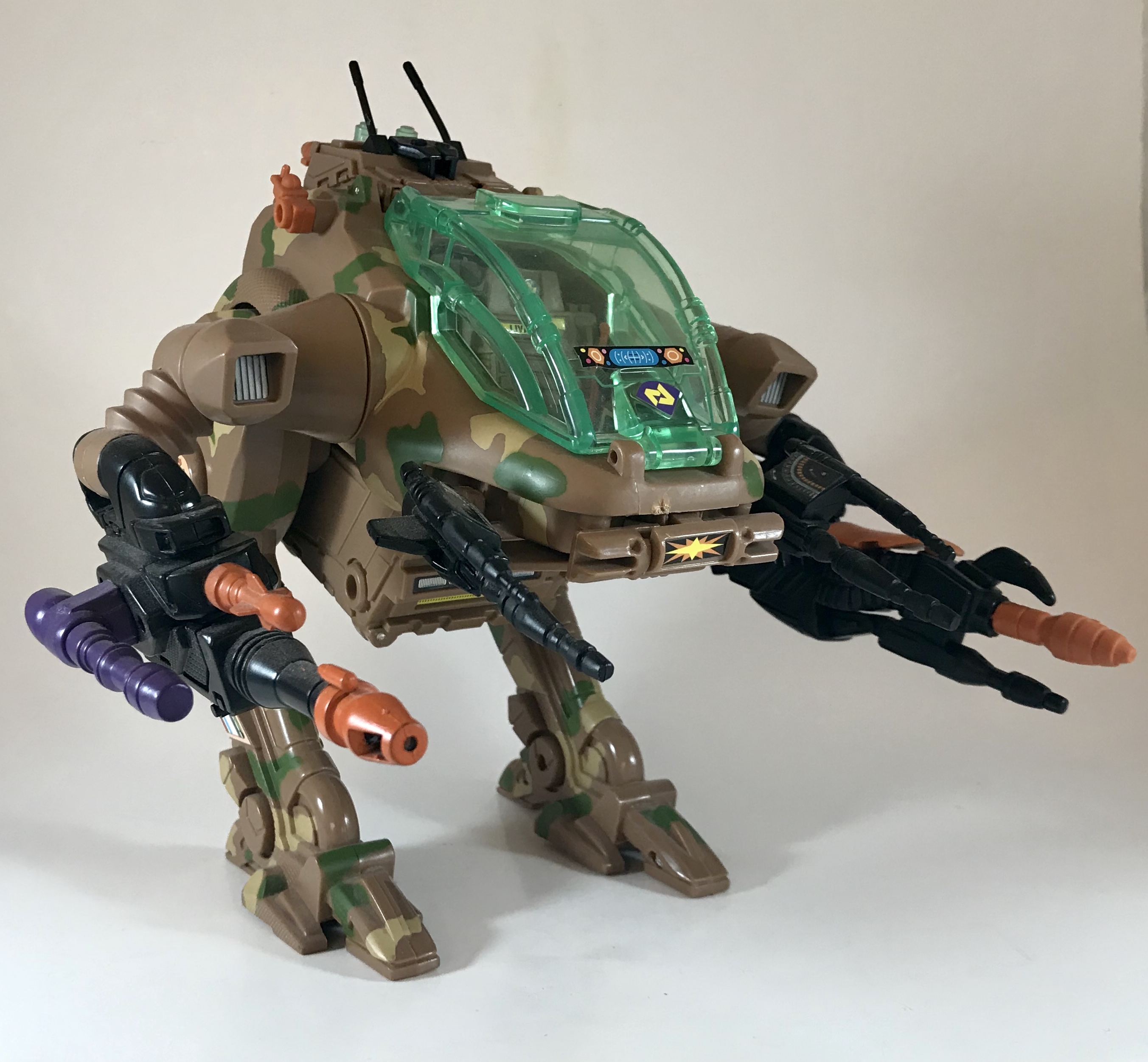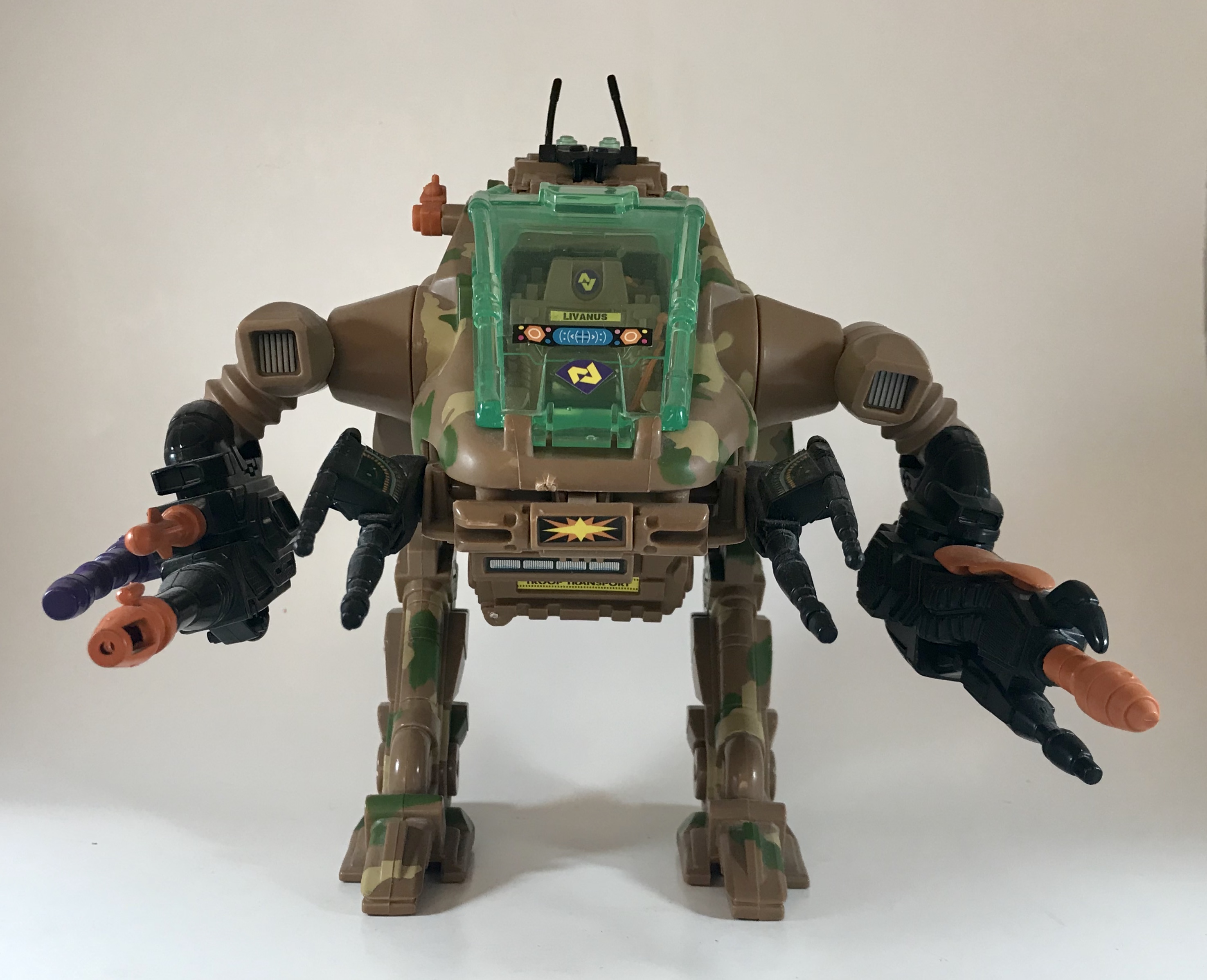 The Troop Transport Light Attack E-Frame was released in 1994 by Playmates, who were at the absolute top of their game. It was the big bad guy mech for the year.