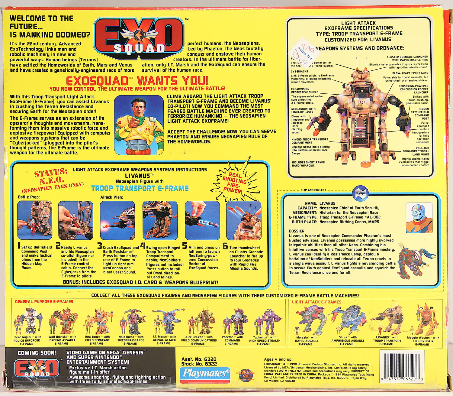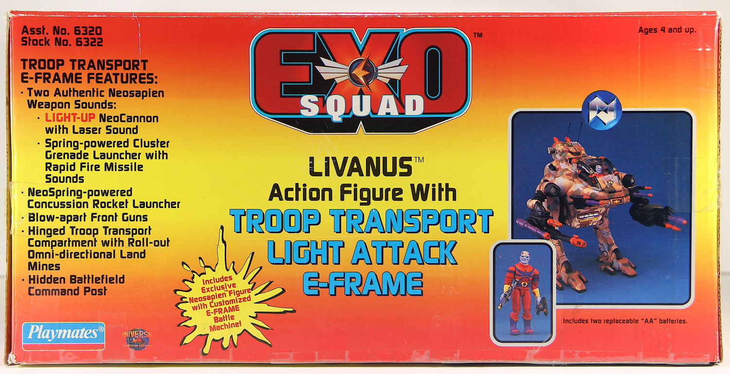 Anyway, let’s look at the actual 1994 Exosquad Livanus with Troop Transport E-Frame toy! And let’s all agree that there’s nothing “light” about it.