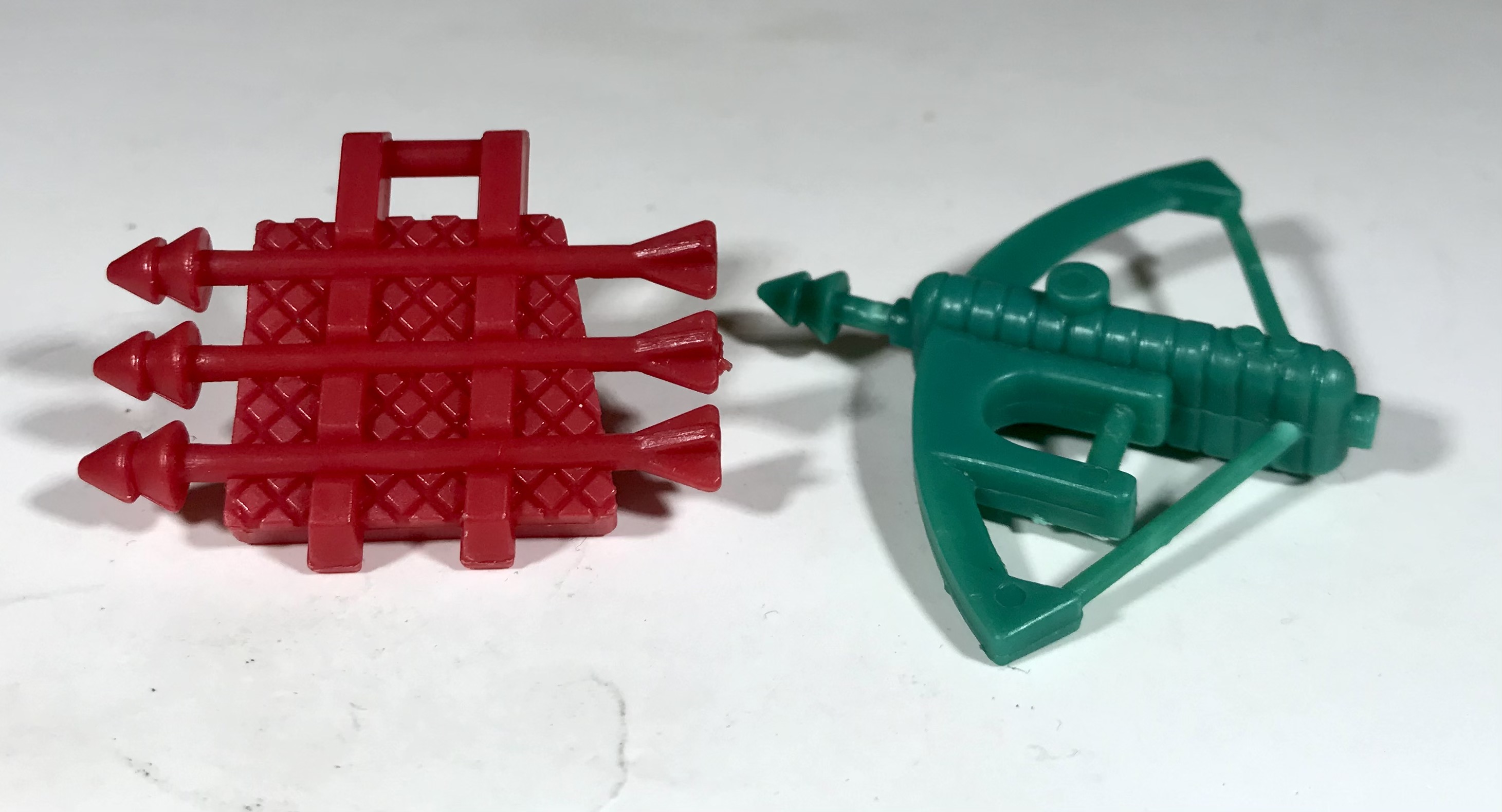 For accessories, Lanard’s Lightning Mobutu comes with a green bow and a red quiver. But they’re not just any bow and quiver! The bow looks like a vertically-held crossbow, but I honestly think it’s more of a “power bow.” As in he presses the button or a trigger and the arrow launches. The arrowhead itself looks fancy, as if it’s an explosive arrow or another trick arrow of some sort. The quiver features three more of these arrows and has a “handle” on the top– though that handle is a bit thick and I wouldn’t recommend placing it in the figure’s hand.