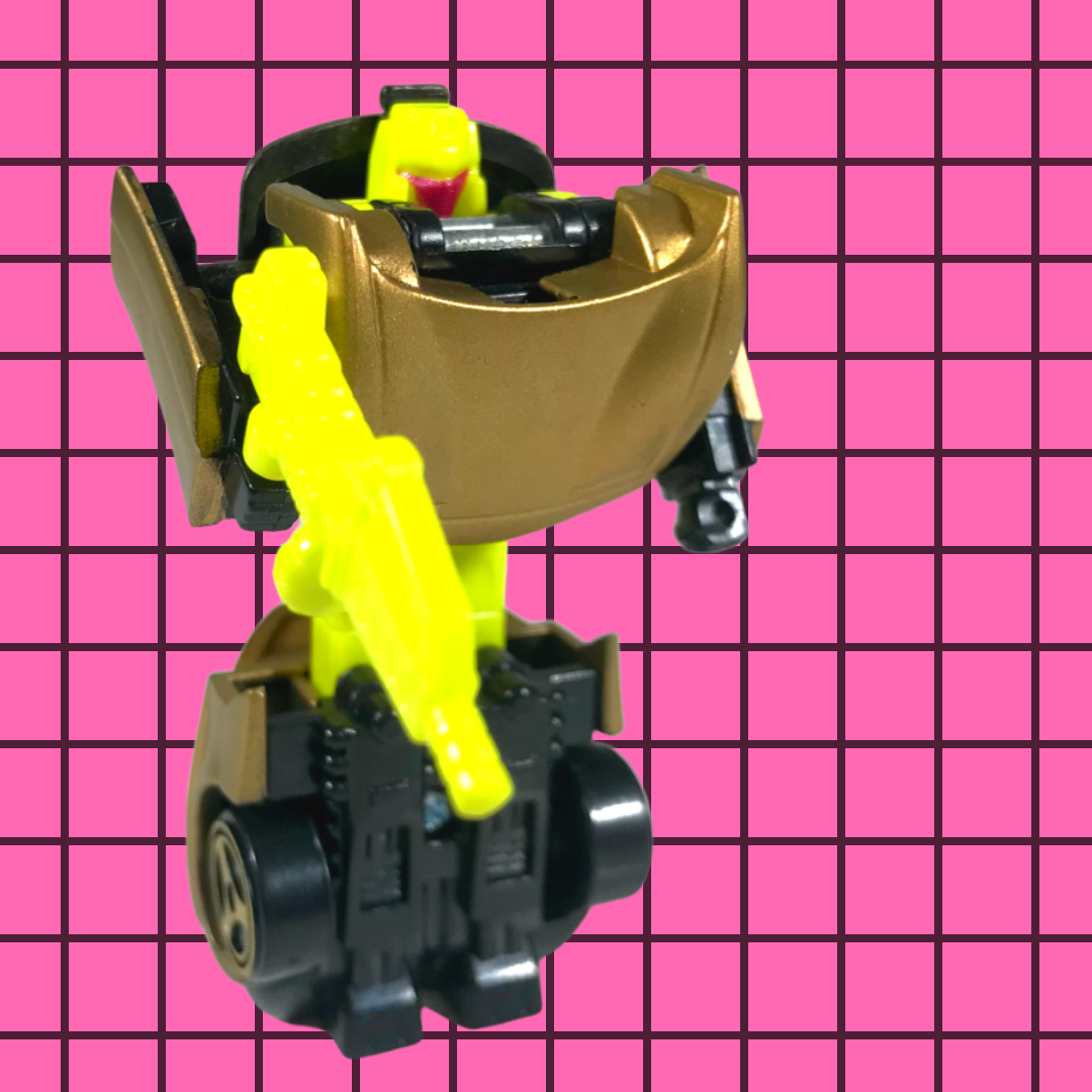 The Character: Many years ago, Yellow Splendid Convoy willingly shrunk her body both to conserve energy and to fight more closely alongside her troops, who were mostly Spychangers. She is brave, noble, and capable– all trademarks of the Convoy lineage. Though she and her teammates fight a brutal multiversal war with the devil known as Unicron, Yellow Splendid Convoy is still more focused on rescuing sentient beings and preserving life than she is on combat. She honed her skills and her wits as the leader of the Yellow Order of The Primus Vanguard, where she became an expert with her multifunction Convoy Cannon, which can shoot both huge energy blasts and fire retardant foam.