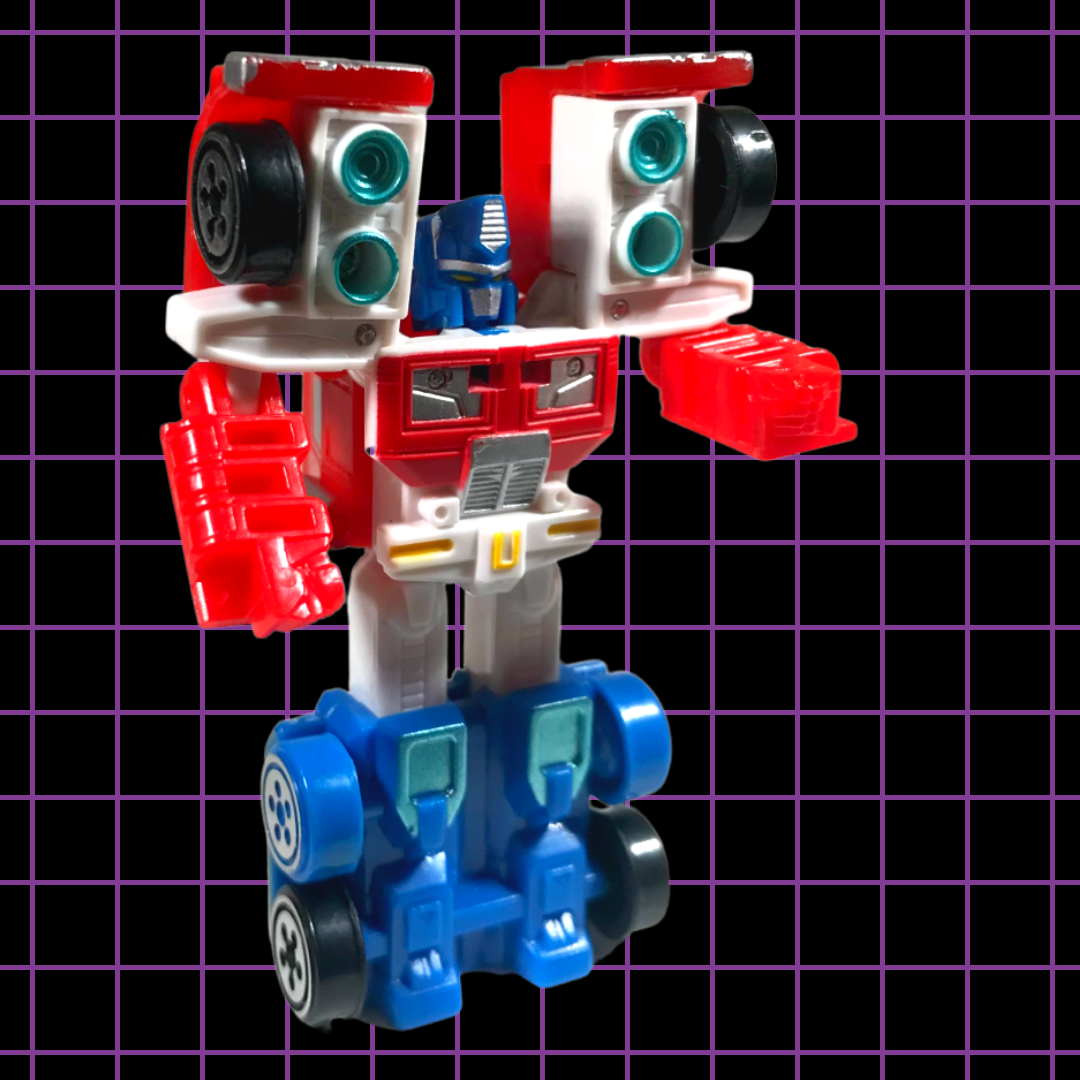 This is just a tiny, fun Optimus Prime toy. And it’s pretty well done– I feel like more effort went into this one than any of the other G1-themed Spychangers. It’s cool to have a pocket-sized G2 Laser Prime. I can’t really imagine incorporating this toy into any grand stories, but it’s neat to have around.