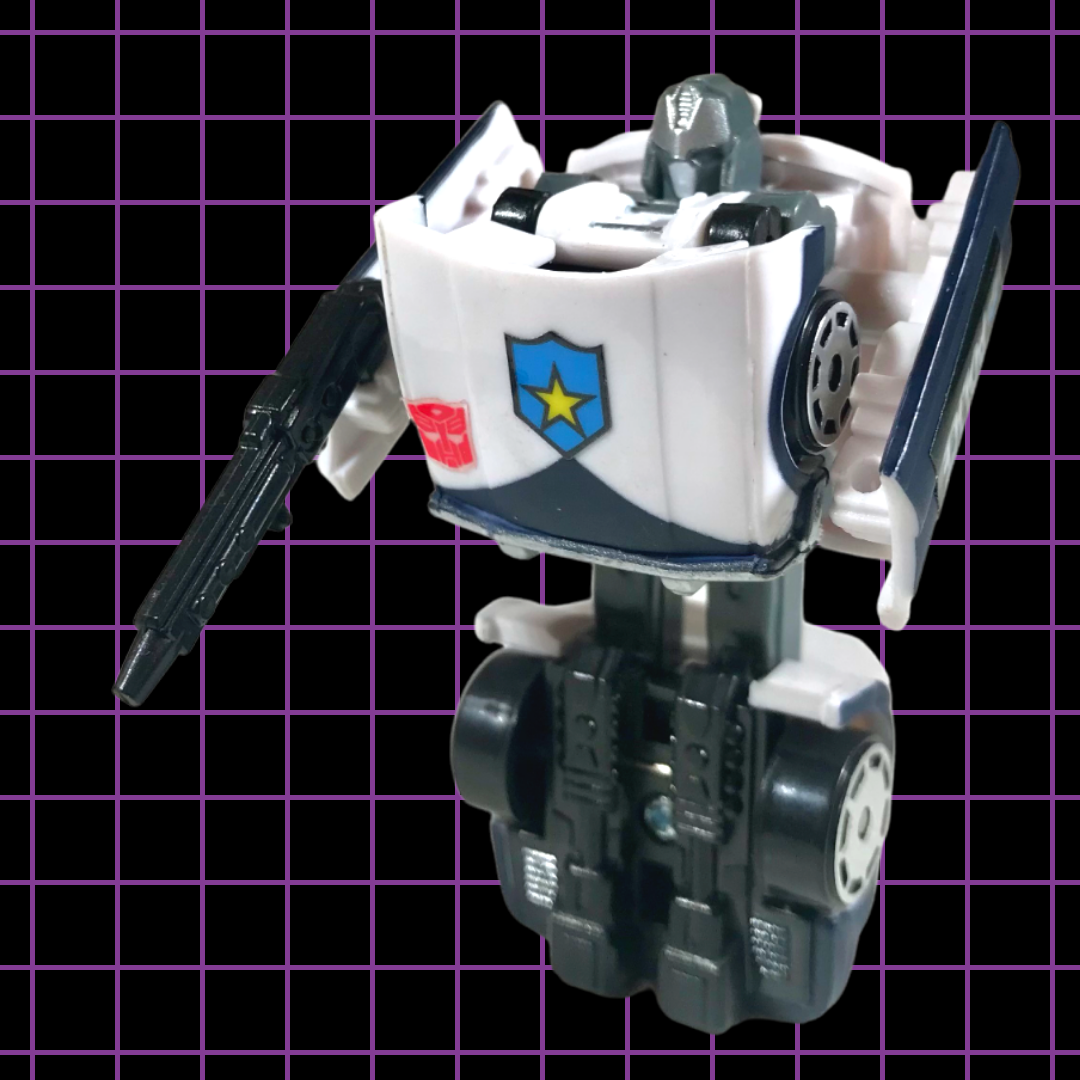 Prowl’s car mode paint-scheme is competent but unremarkable. The Autobot sticker on the hood is crooked on mine, which could be a pretty common thing. Otherwise, this is a decent little cop car. But it’s still a cop car so I have a hard time caring too much about it.