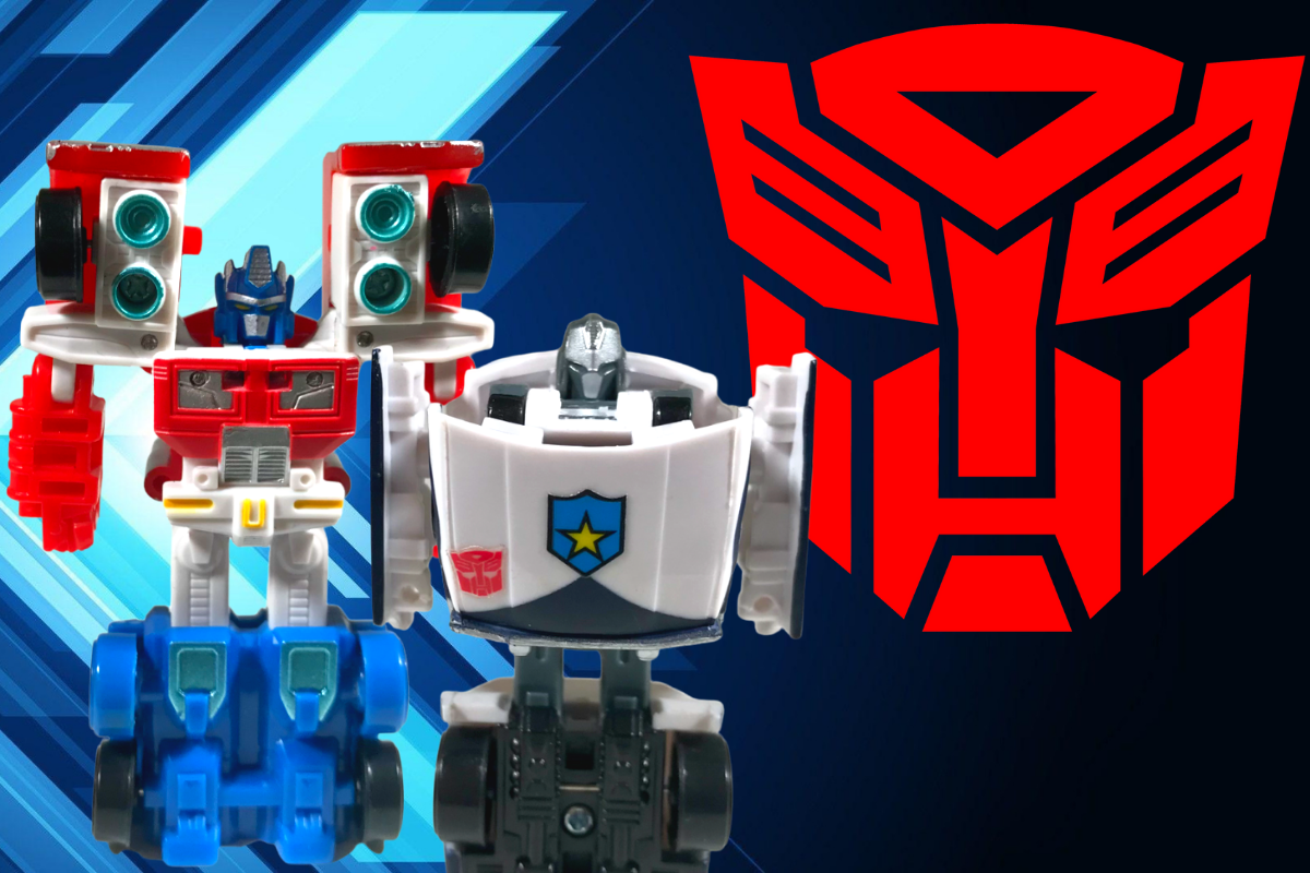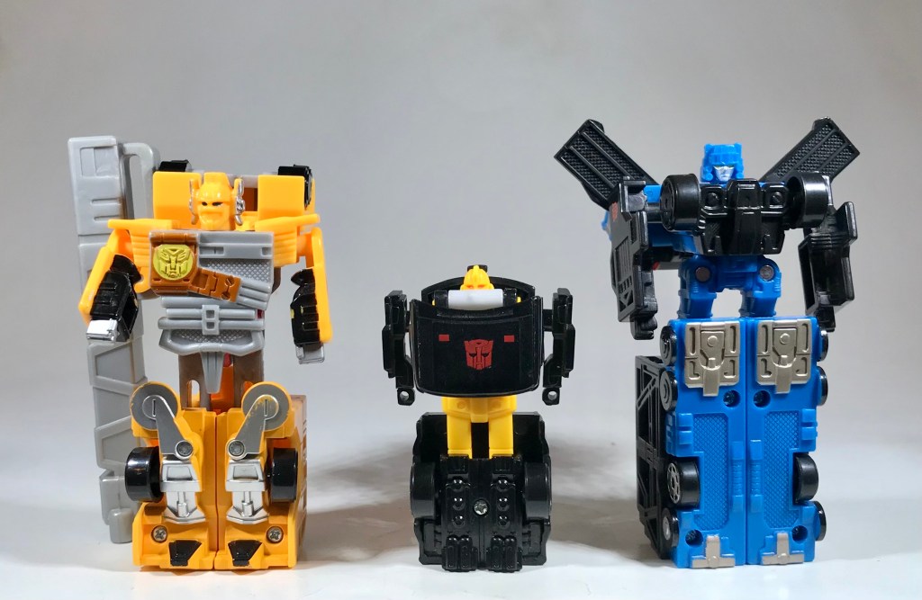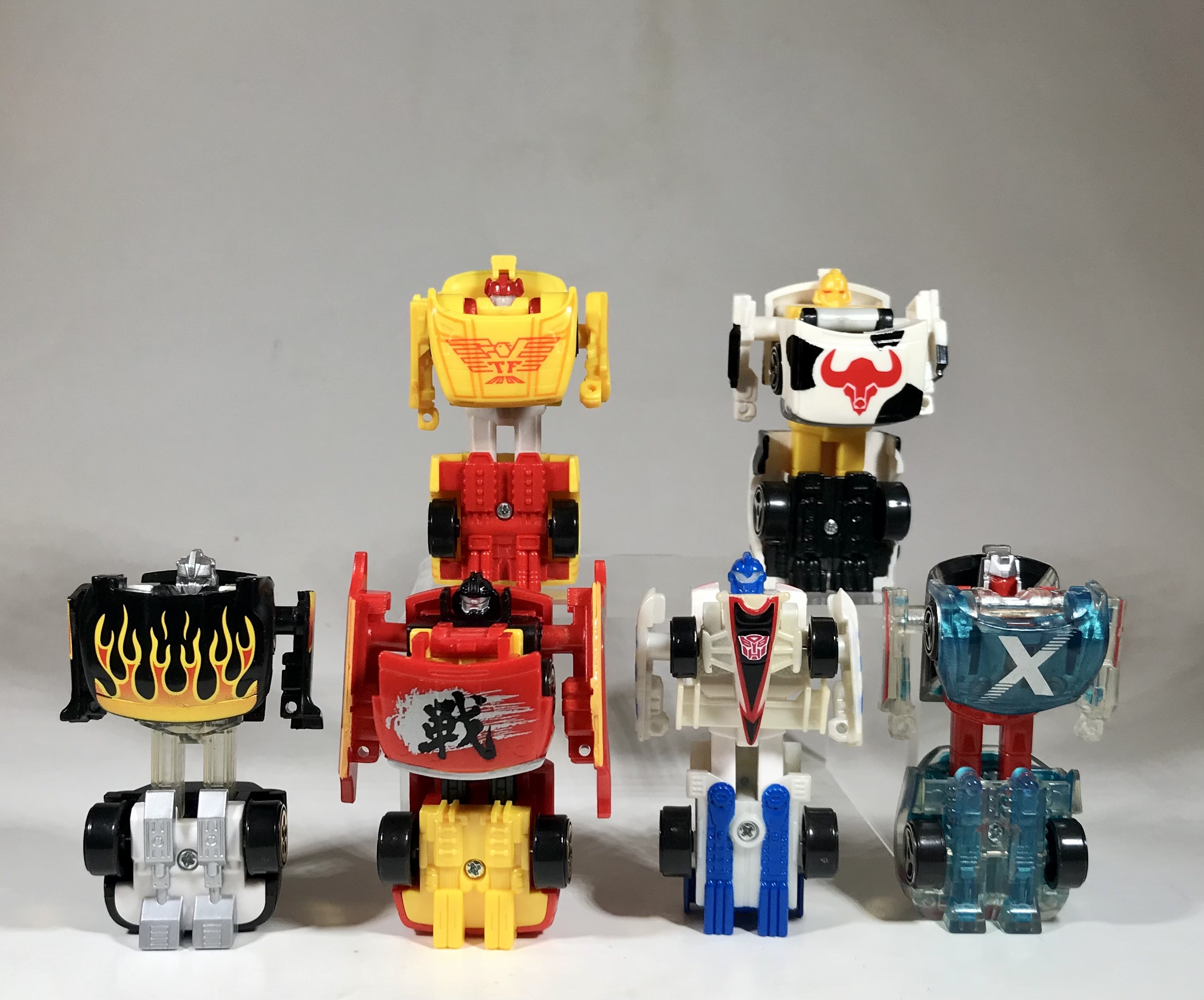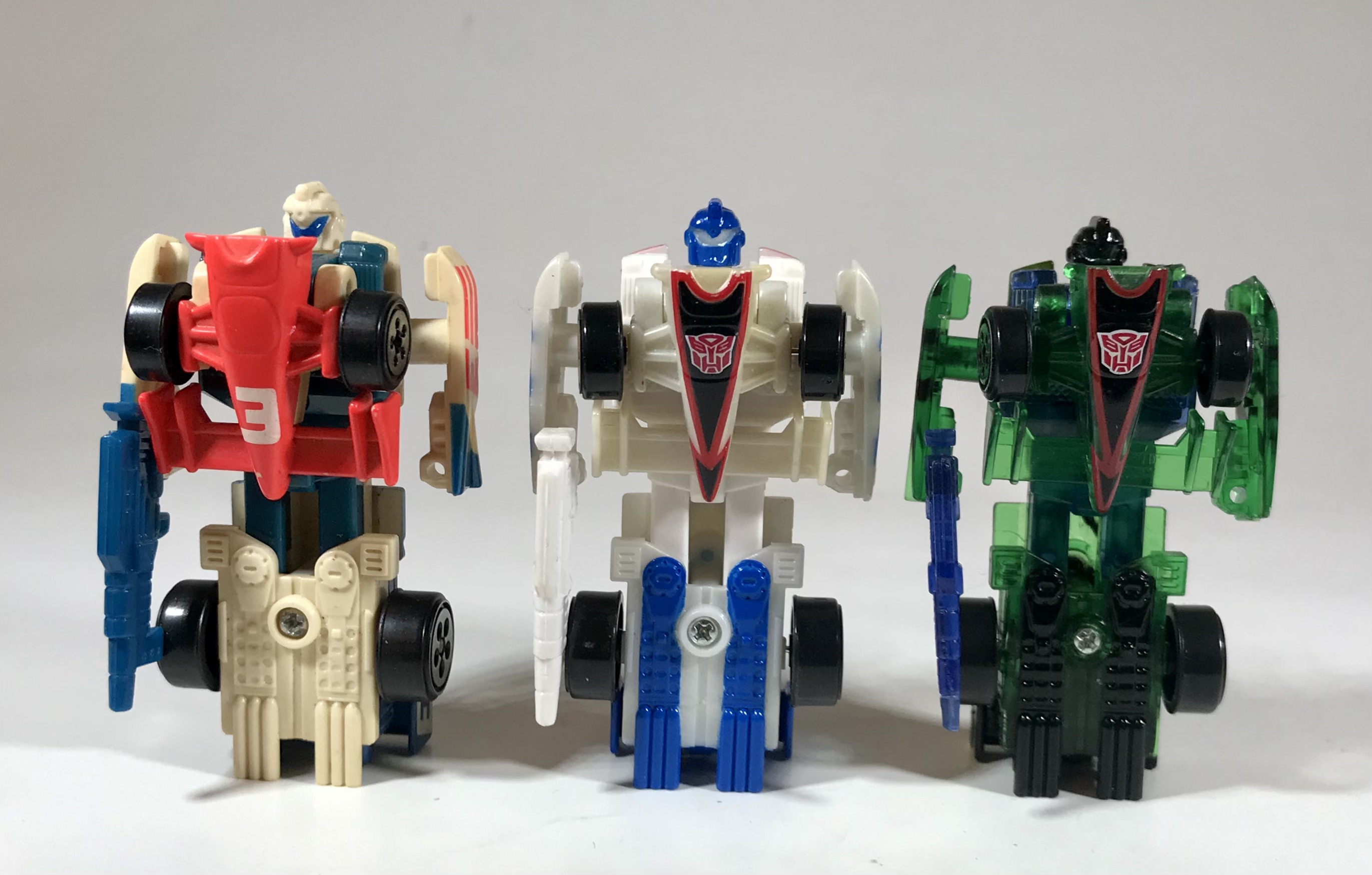 In 1995, Hasbro released the Transformers Generation 2 Go-Bots sub-line– an assortment of 1:64 cars, done in the Hot Wheels and Matchbox style, with through-axle construction that made them compatible with most Hot Wheels race tracks and accessories. They also transformed into cute little robots.
