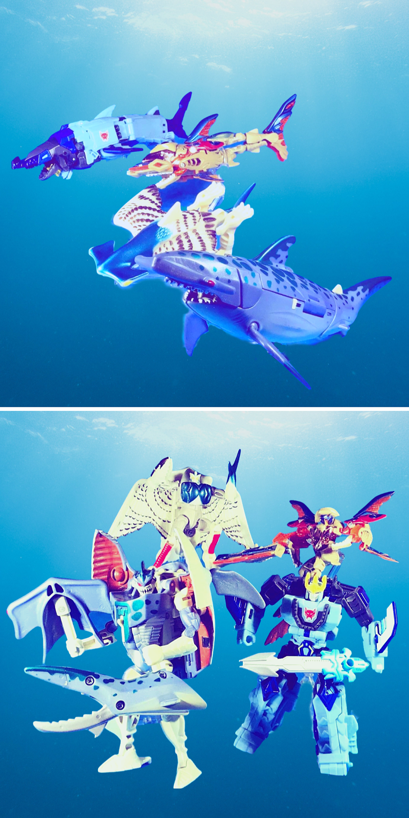I imagine that when the hammerhead is fired from the missile launcher, in either beast mode or robot mode, it acts as sort of a powerful blunt force instrument. I also imagine that when Cybershark is underwater, the head/hammer returns to him, much like Thor’s hammer does. It is self propelled underwater, and can either affix itself back in the launcher or fly back into his hand. You’re right in that it’s not the most convincing weapon, but I still think having a handheld hammer weapon is pretty cool and unique for a Transformer. Even if it’s not perfect.