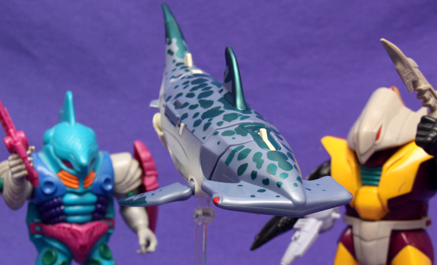 I think Cybershark was the first realistic shark in all of Transformers. Before that you had Rippersnapper and Overbite, who both had arms and legs in their beast modes. You also had Gnaw, a Sharkticon, but he looks more like a piranha or a lightless angler fish than a shark. So Cybershark was quite novel at the time.