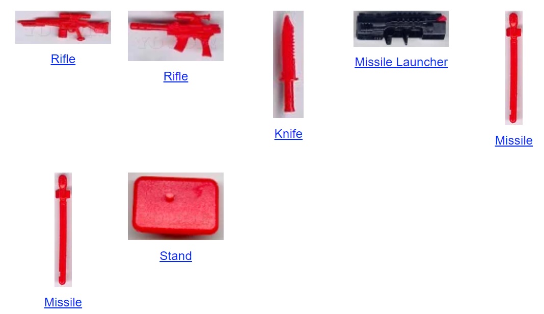 Now, it’s time for the accessories. Most of which I don’t have. But here’s a screenshot from YoJoe: