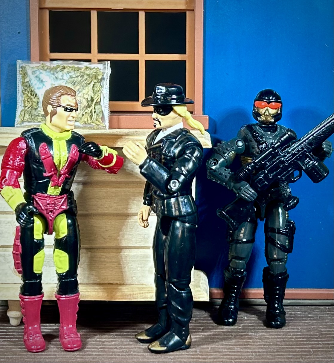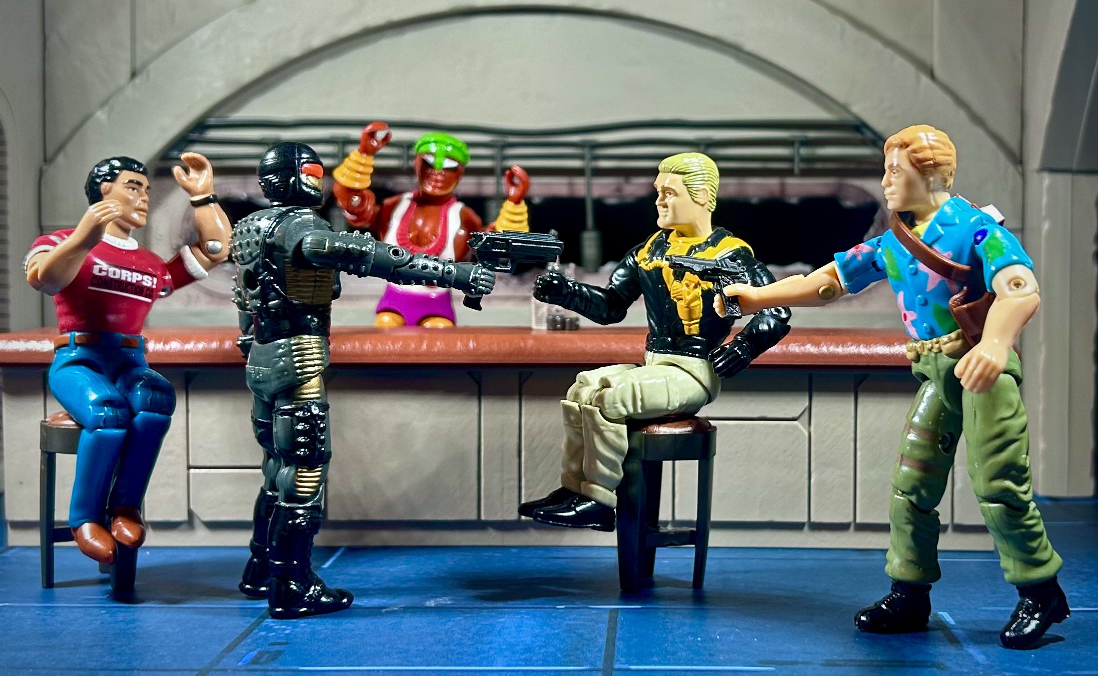 I get a big smile on my face whenever you utilize that bar set. I want to project myself there and grab a drink while eavesdropping on all your toys chatting it up. That shot of the HHST with the cobra shield stepping through a doorway flanked by the three normal headhunters is also really cool, are those fortnite panels back there? That must be quite the assembly.