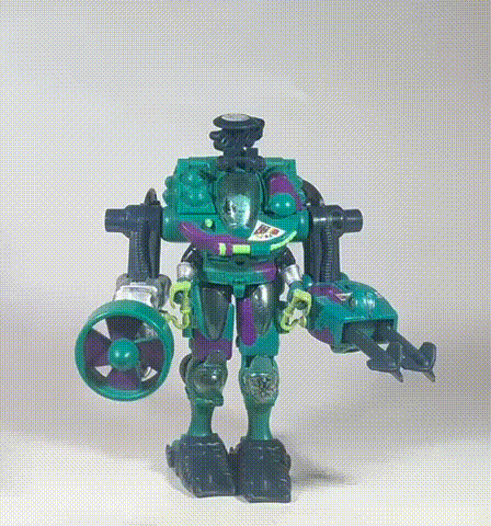 The propeller is the least exciting accessory the toy comes with. The sculpt and paint are nice, but it’s not really a weapon of any kind. It could possibly give the E-Frame some added speed underwater, but that’s about it. This kind of thing is common across the Exosquad Special Mission range– each toy basically comes with one useful attachment and one dud (though I’d argue that both of DeLeon’s are actually fairly good).