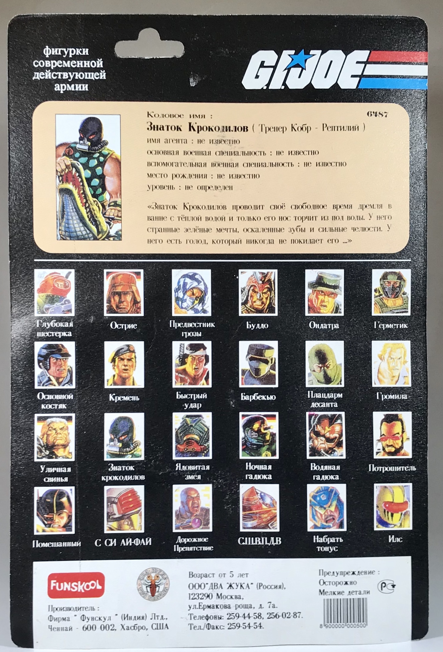 The Russian Funskool GI Joe Croc Master figures, and all other Russian Funskool figures, were released around 1998. That’s according to a source living in a former Soviet territory. Despite their long ago production run, they can still sometimes be found in various former Soviet states to this day.