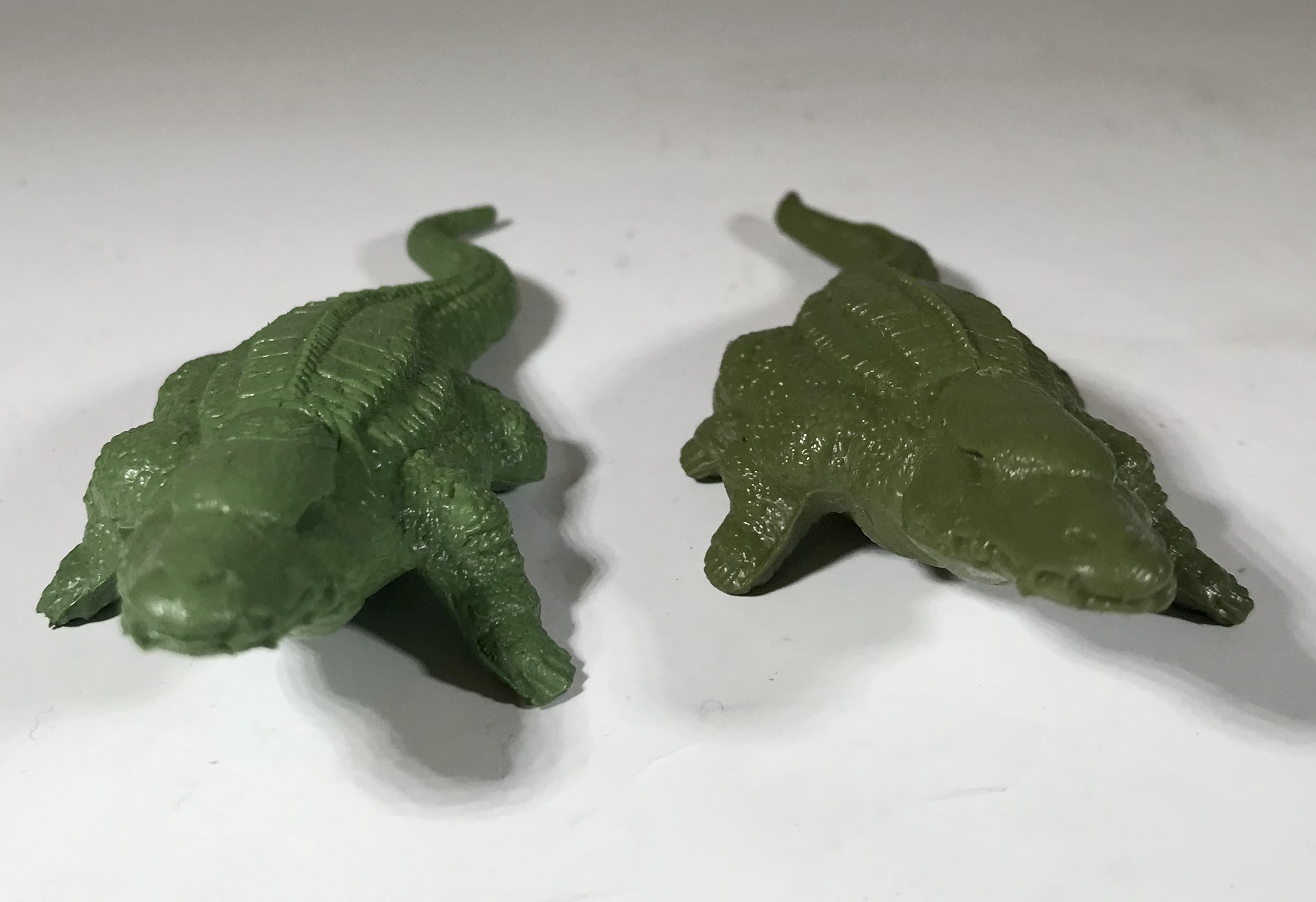 You’ll notice that, as with the figure, the Funskool Croc Master’s pet alligator is a lighter, brighter green. They are both made from a slightly rubbery material, but there is a slight difference in the plastic used. It doesn’t affect anything one way or the other, though. They are both well made and well detailed.