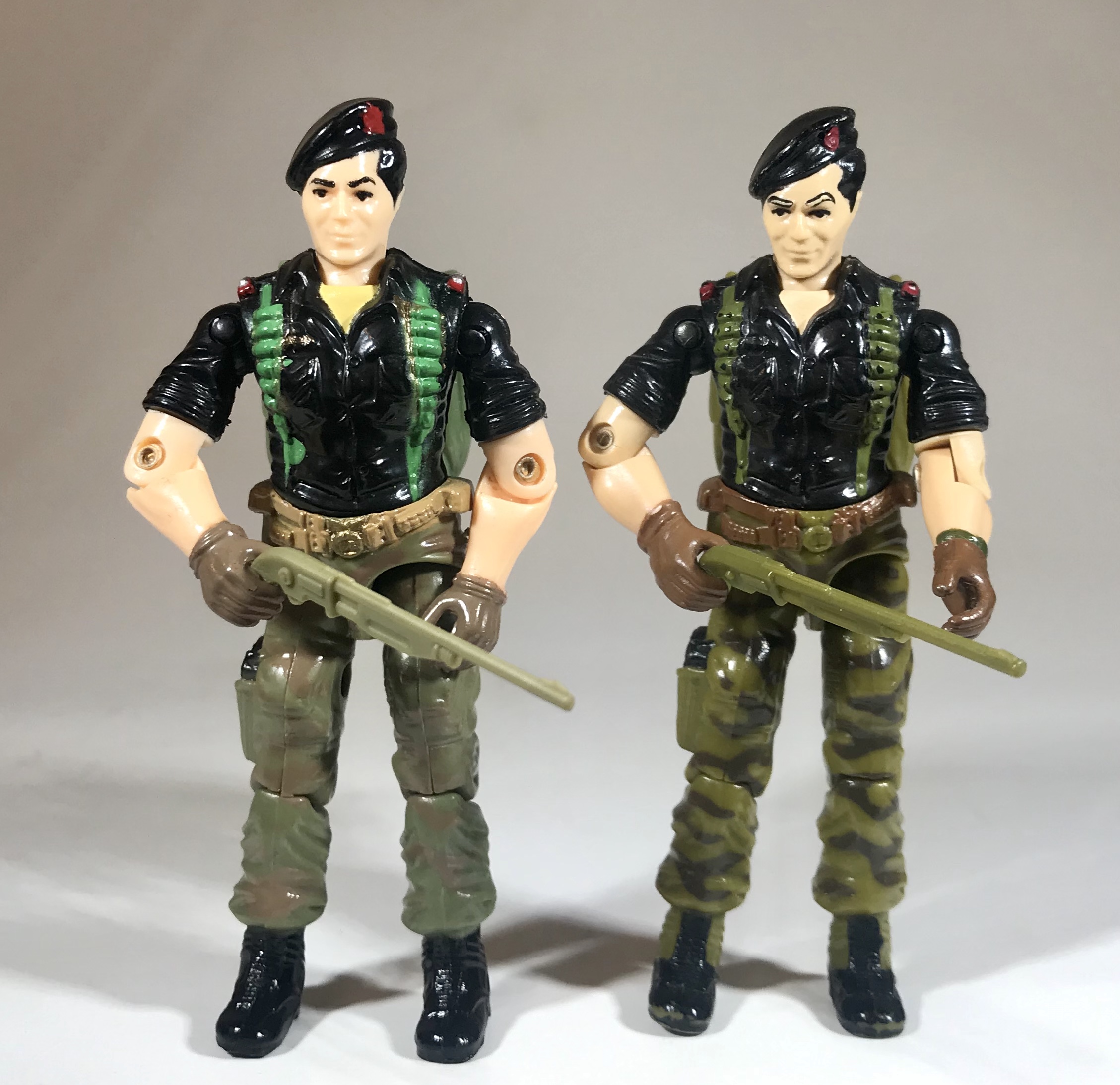 Just for fun, here’s (from left to right) Russian Funskool Flint, 1985 Hasbro Flint, 1988 Hasbro Tiger Force Flint, and Hasbro 2005 comic pack Flint. I should have included the TRU Exclusive Night Force version in this photo, but I guess he was too good at hiding in the shadows.