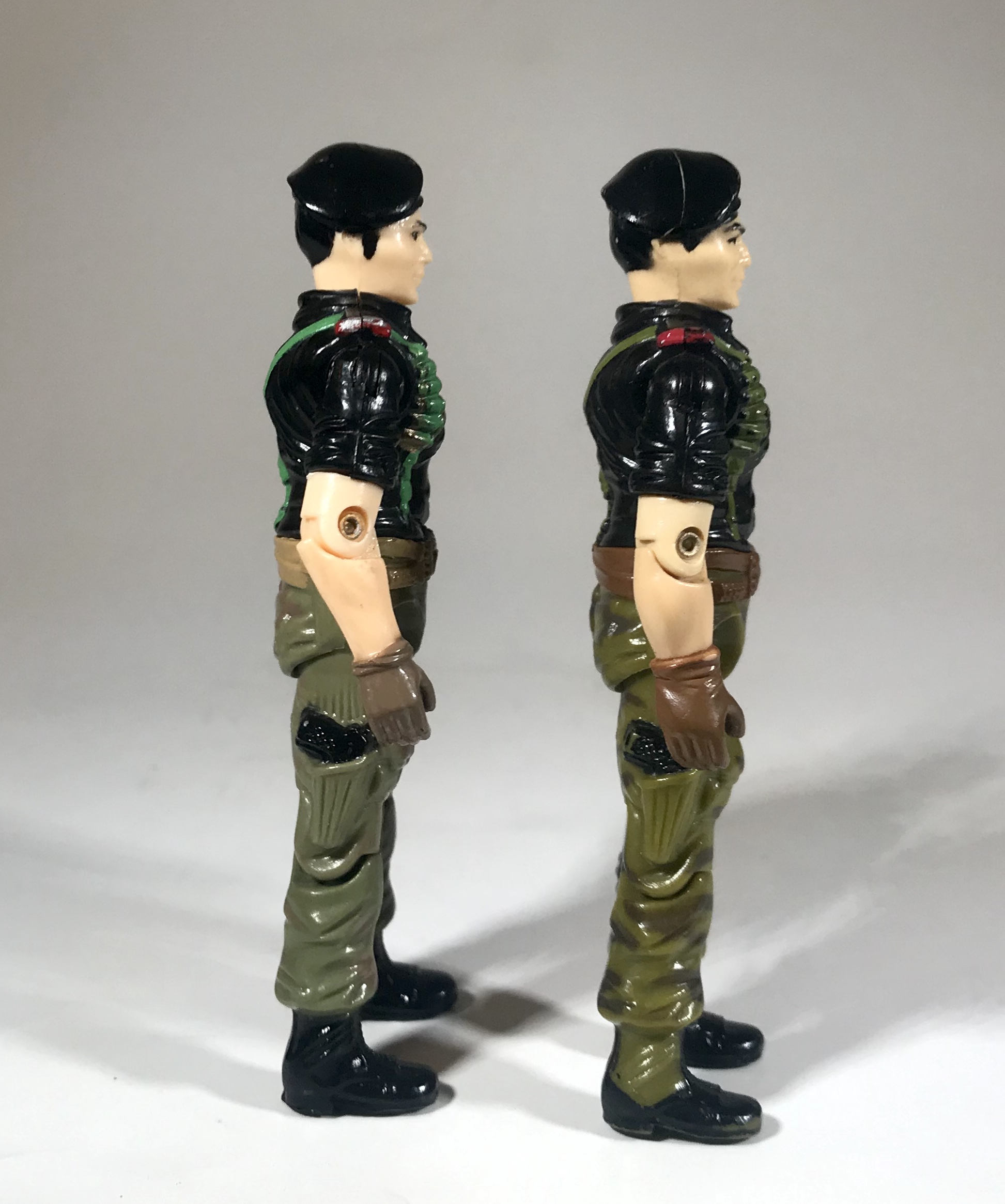 The biggest difference between these figures is the lower arms. The Russian Funskool Flint uses the lower arms from Hasbro’s 1986 Zandar figure. That means it doesn’t have a sculpted wrist watch, but the overall look is quite similar.