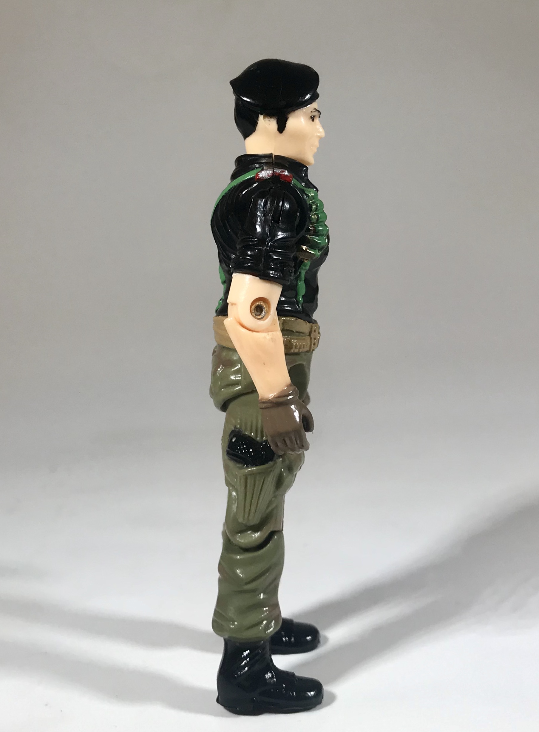 Red paint is used for detailing on the beret and shoulder details, and black is used for the beret and boots. Dark brown paint is used for the gloves and medium green is used for the shoulder straps. There are also brown camouflage paint apps on the legs, which ends up looking fairly subtle against the dark green.