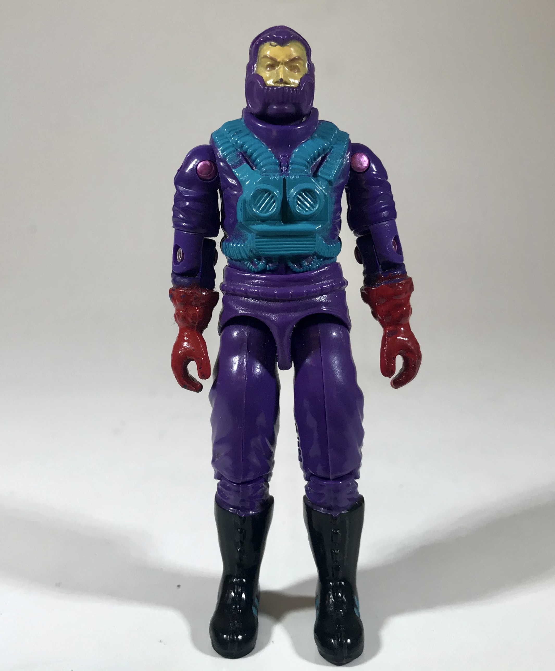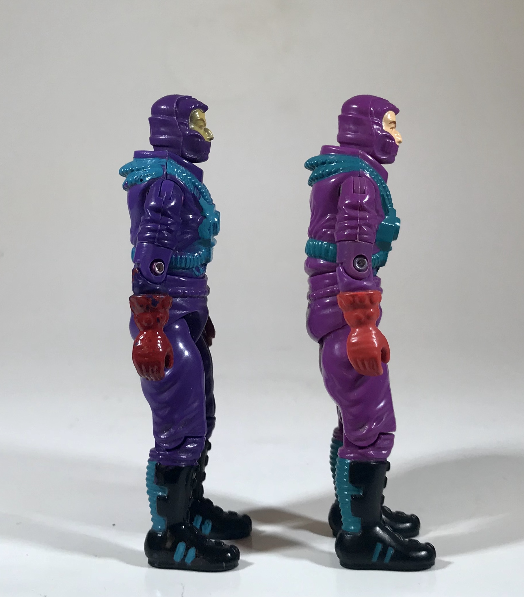 This figure is based on the GI Joe Toxo-Viper from 1988. It shares that figure’s mold and all of its accessories. The colors and plastic quality are slightly different, however.